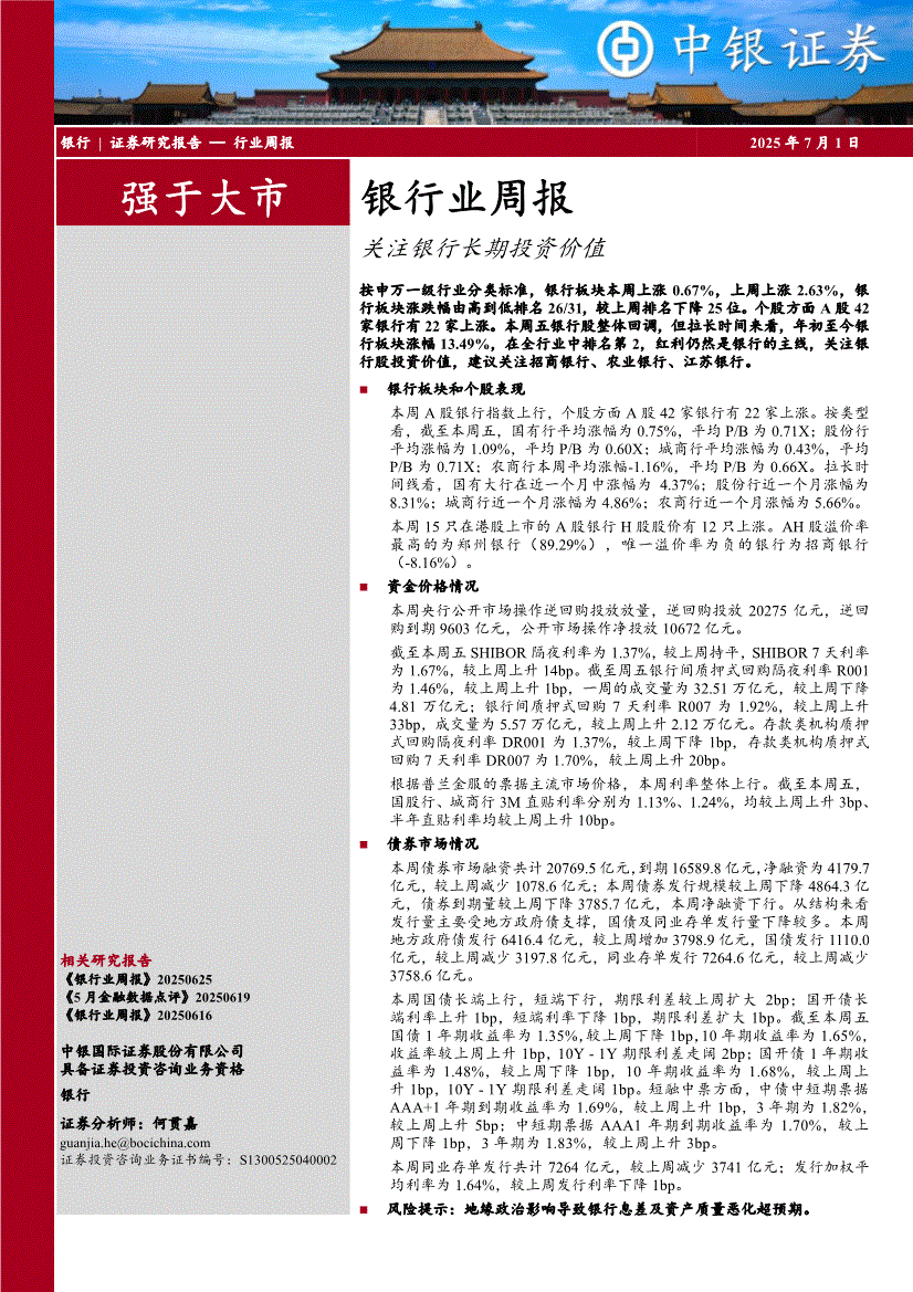 银行业:中银国际-银行业周报:关注银行长期投资价值-250701
