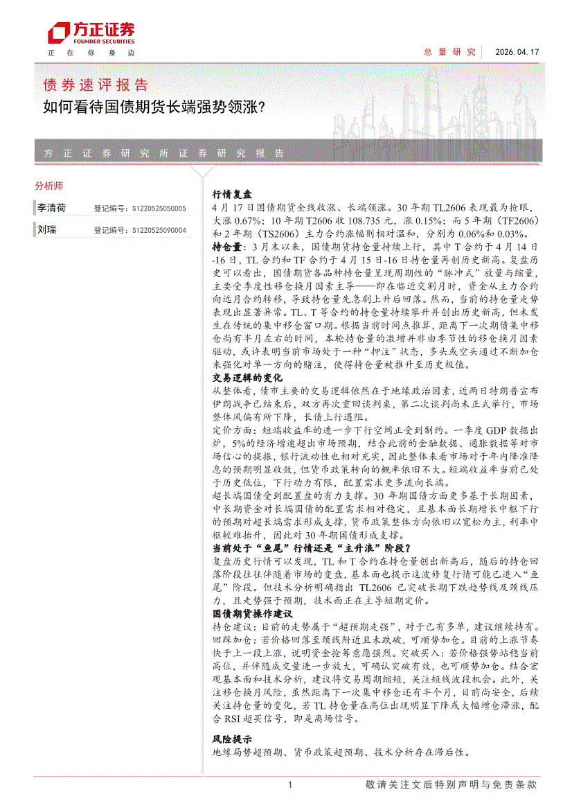 方正证券-债券速评报告:如何看待国债期货长端强势领涨?-260417