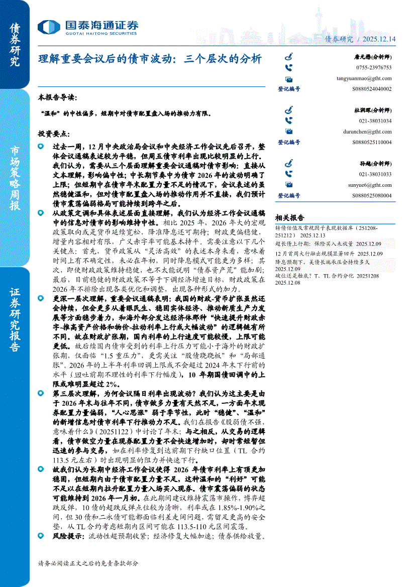 国泰海通证券-理解重要会议后的债市波动:三个层次的分析-251214