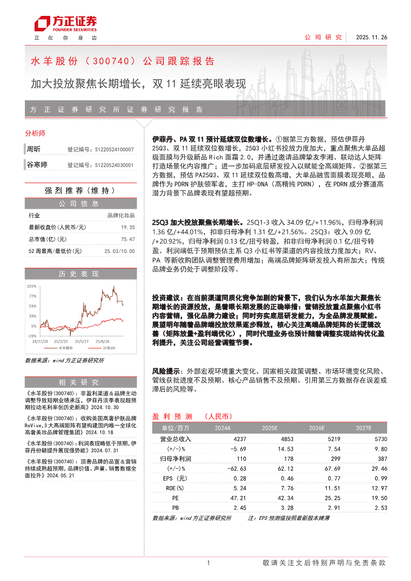 方正证券-水羊股份-300740-公司跟踪报告:加大投放聚焦长期增长,双11延续亮眼表现-251126
