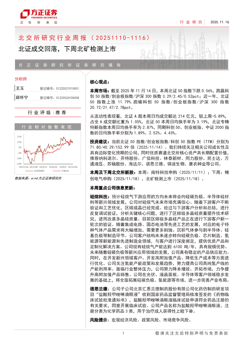 方正证券-北交所研究行业周报:北证成交回落,下周北矿检测上市-251116