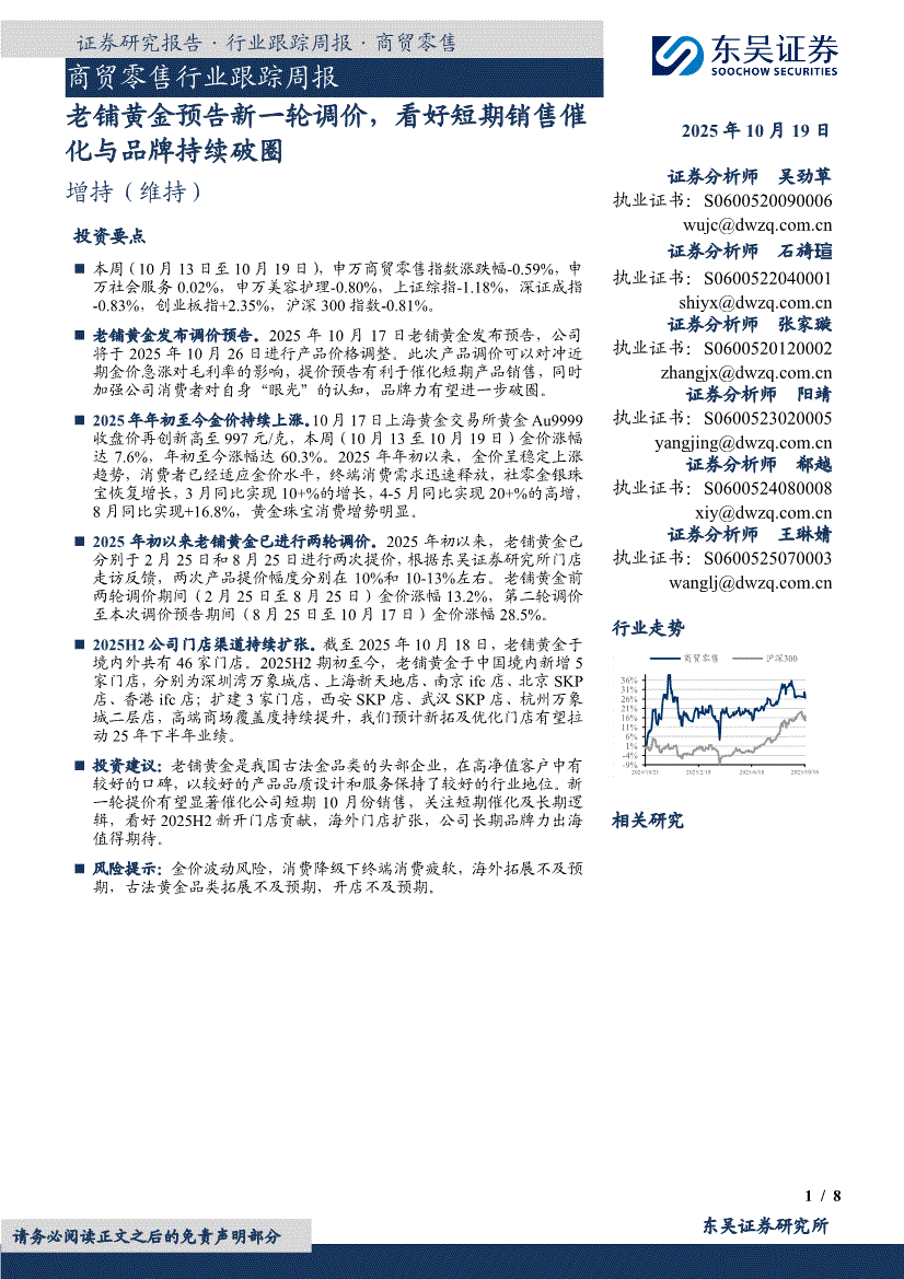 商贸零售行业:东吴证券-商贸零售行业跟踪周报:老铺黄金预告新一轮调价,看好短期销售催化与品牌持续破圈-251019