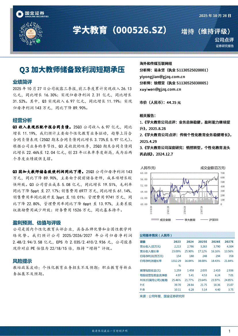 学大教育:国金证券-学大教育-000526-Q3加大教师储备致利润短期承压-251028