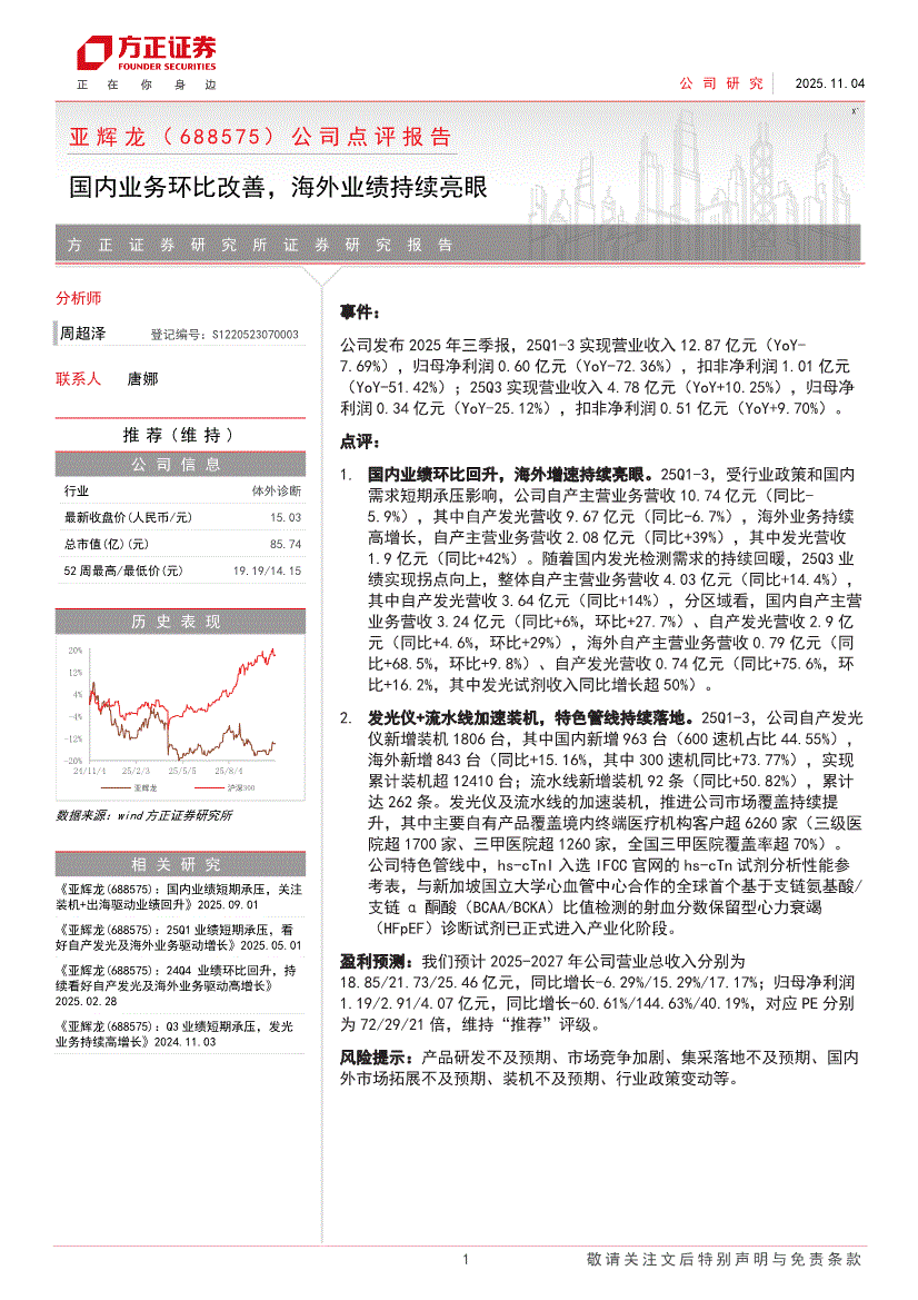亚辉龙:方正证券-亚辉龙-688575-公司点评报告:国内业务环比改善,海外业绩持续亮眼-251104