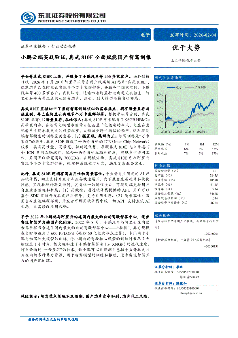 电子行业:东北证券-电子行业:小鹏云端实战验证,真武810E全面赋能国产智驾训推-260204