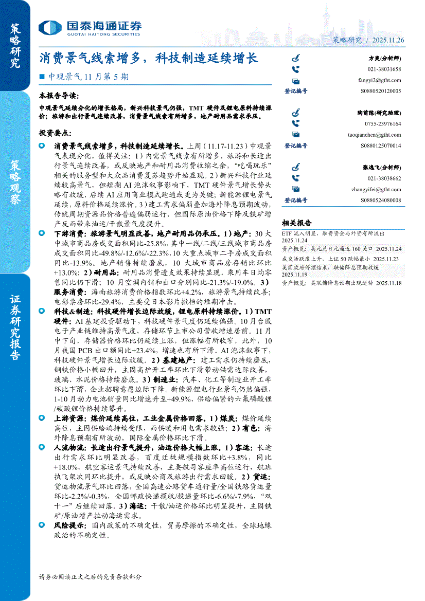 国泰海通证券-中观景气11月第5期:消费景气线索增多,科技制造延续增长-251126