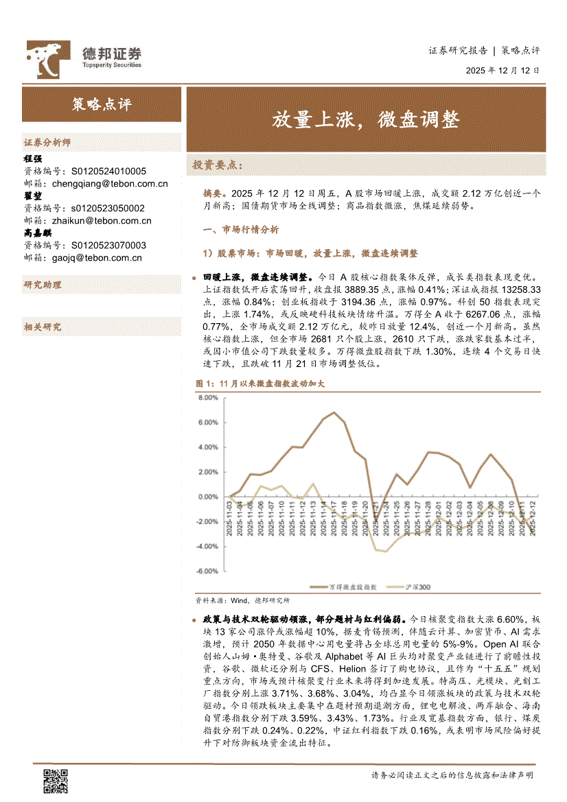 德邦证券-策略点评:放量上涨,微盘调整-251212