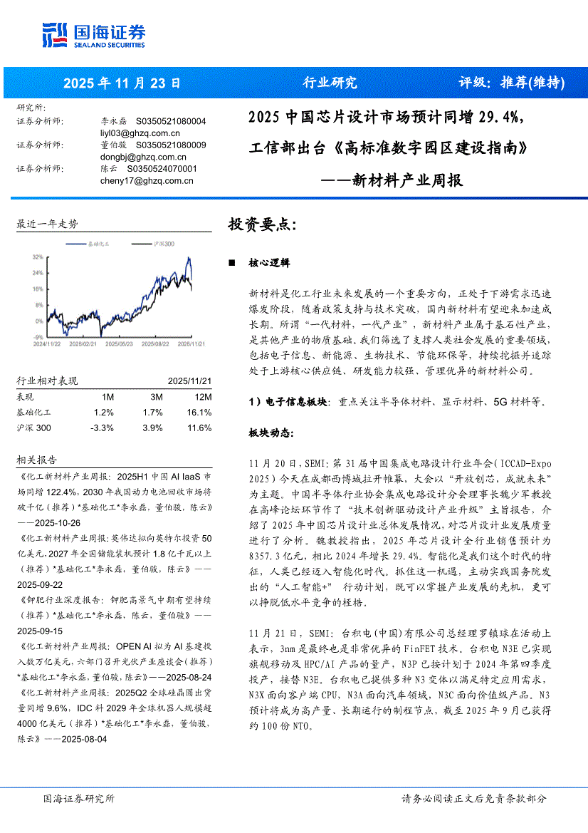 新材料行业:国海证券-新材料产业行业周报:2025中国芯片设计市场预计同增29.4%,工信部出台《高标准数字园区建设指南》-251123