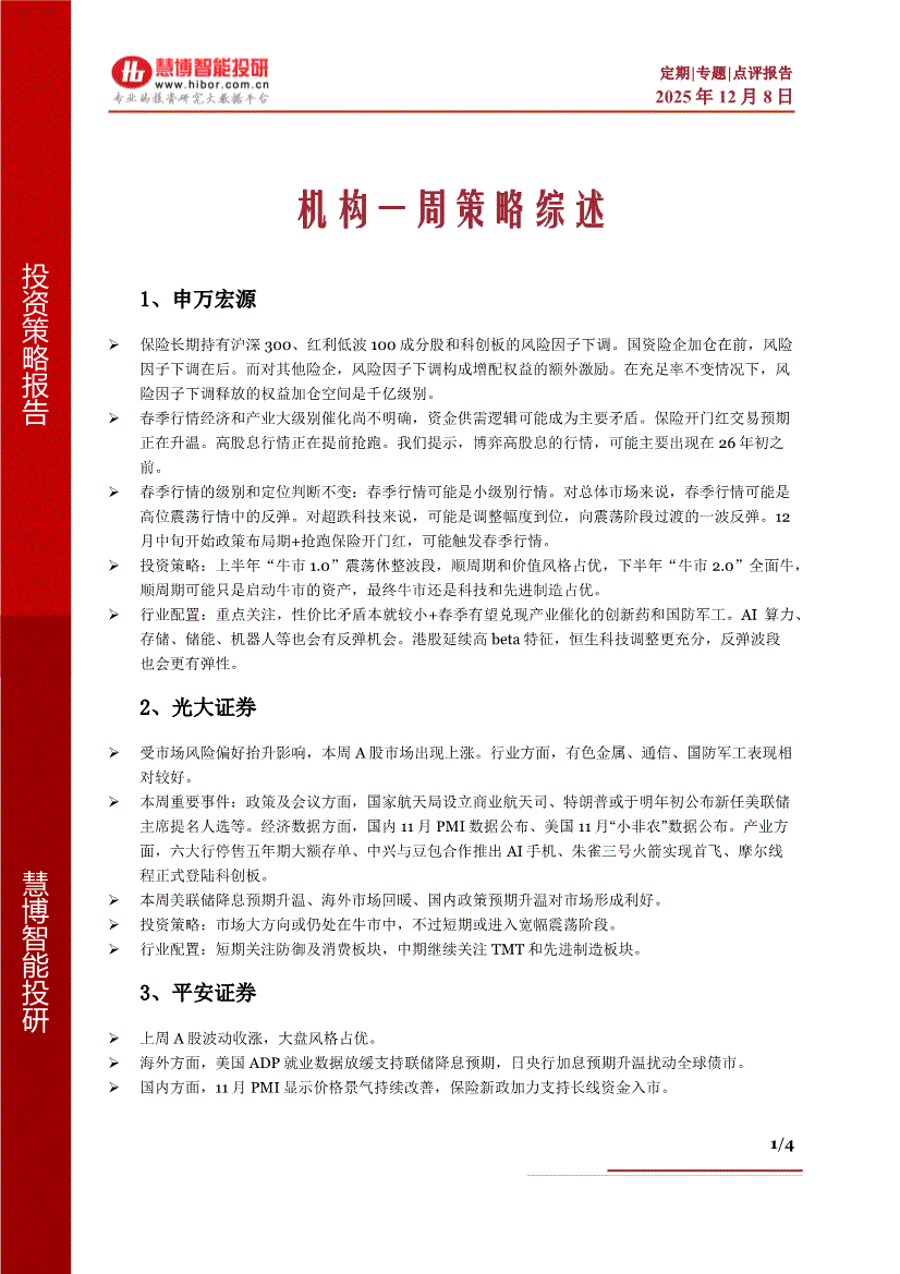 慧博智能投研-机构周策略:机构观点及行业配置-251130