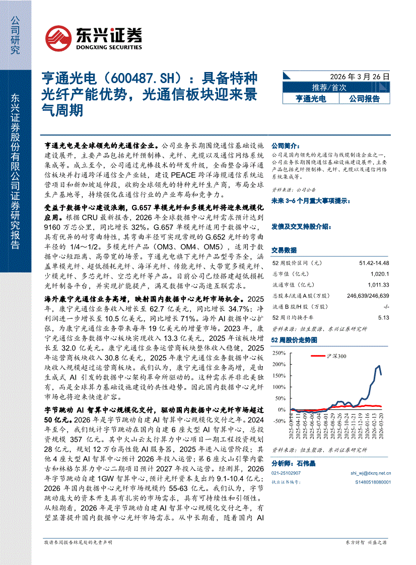 东兴证券-亨通光电-600487-具备特种光纤产能优势,光通信板块迎来景气周期-260326