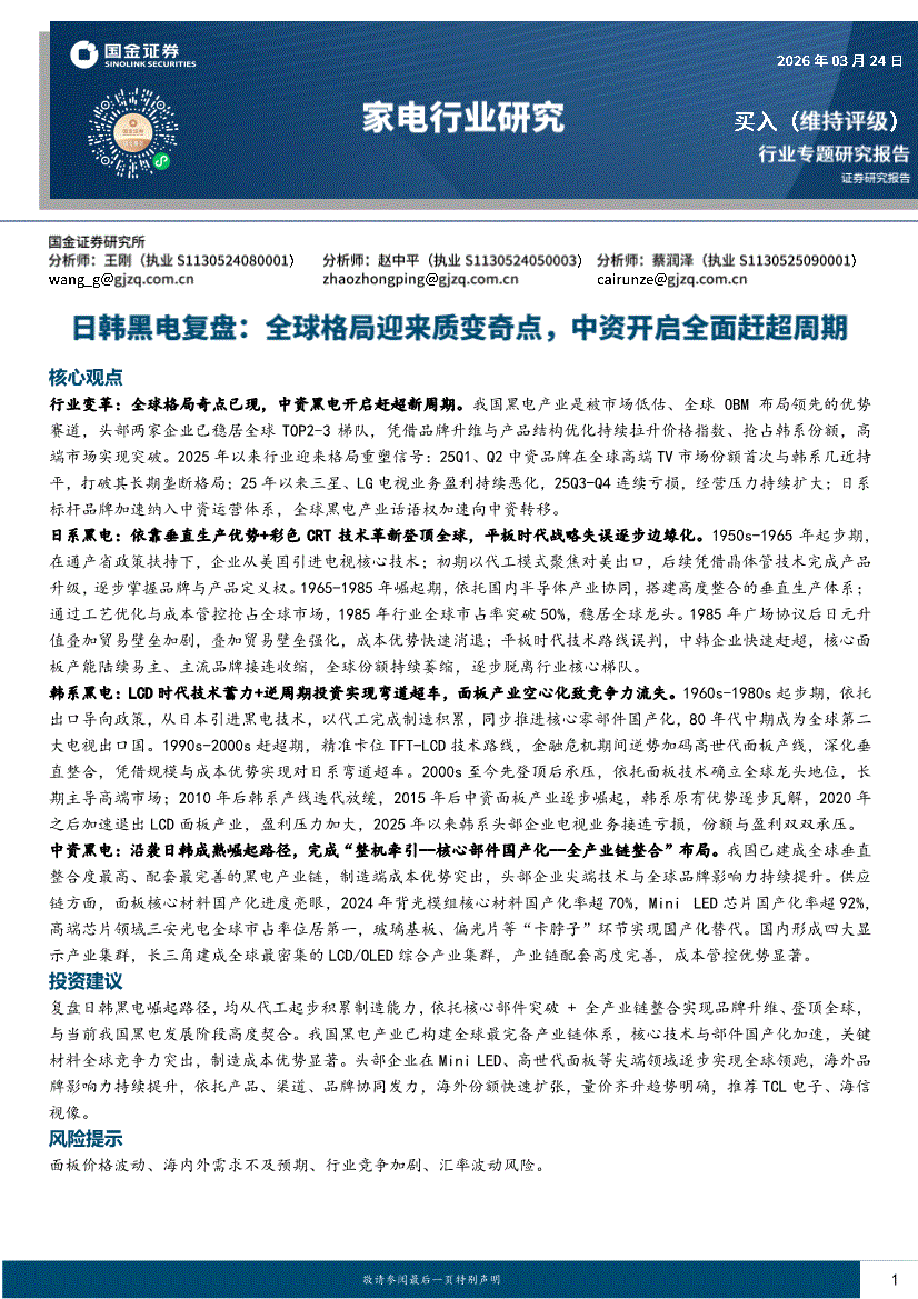 家电行业:国金证券-家电行业日韩黑电复盘:全球格局迎来质变奇点,中资开启全面赶超周期-260324