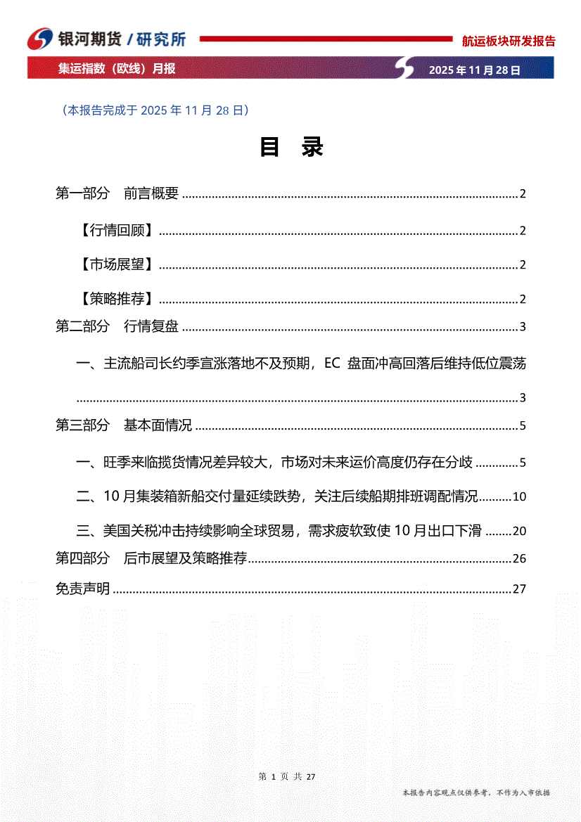 银河期货-集运指数(欧线)月报:春节前旺季宣涨预期仍在,关注船司复航红海动作-251128