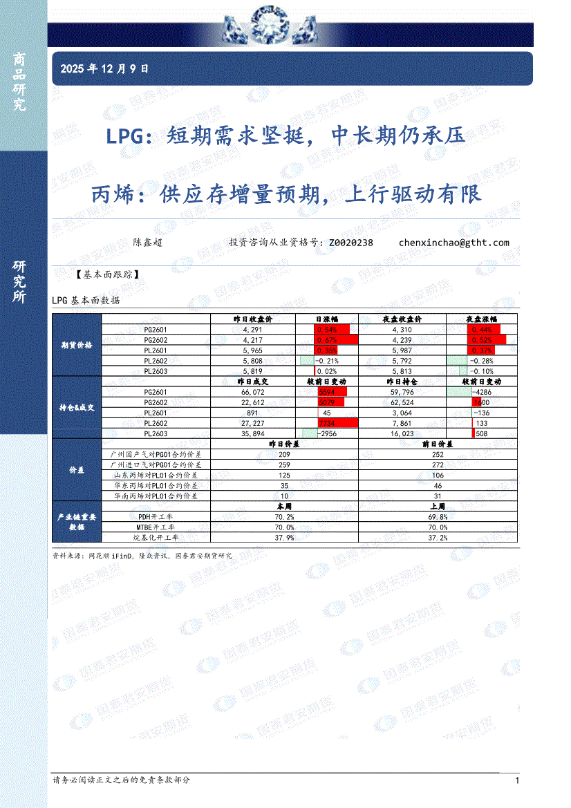 国泰君安期货-LPG:短期需求坚挺,中长期仍承压,丙烯,供应存增量预期,上行驱动有限-251208