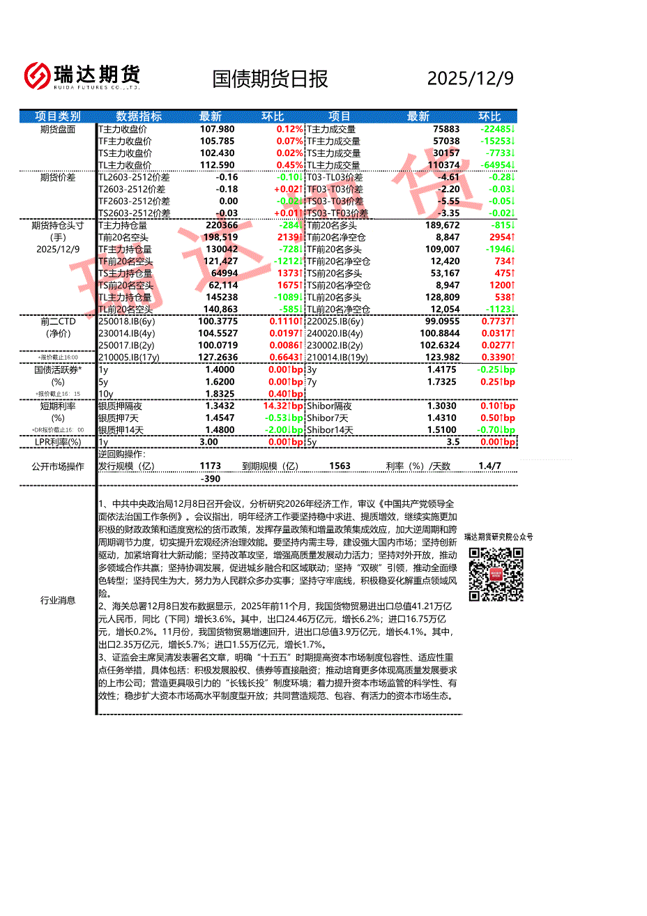 瑞达期货-国债期货周报:宽货币预期升温,超长债仍待企稳-251212
