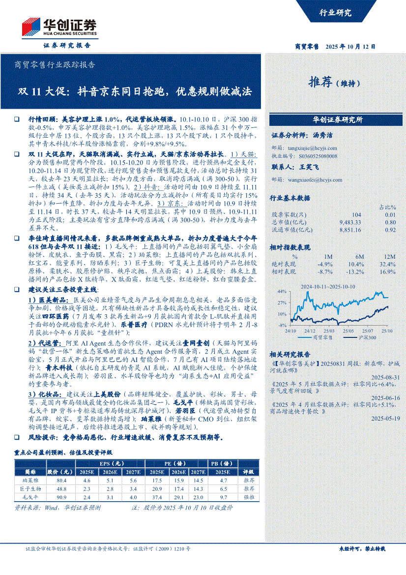 商贸零售行业:华创证券-商贸零售行业跟踪报告:双11大促,抖音京东同日抢跑,优惠规则做减法-251012
