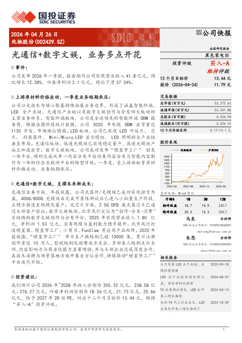 兆驰股份:国投证券-兆驰股份-002429-光通信+数字文娱,业务多点开花-260426
