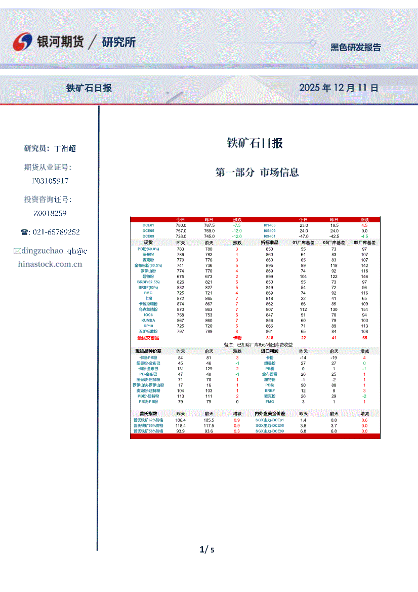 银河期货-市场预期反复,矿价偏弱运行-251114