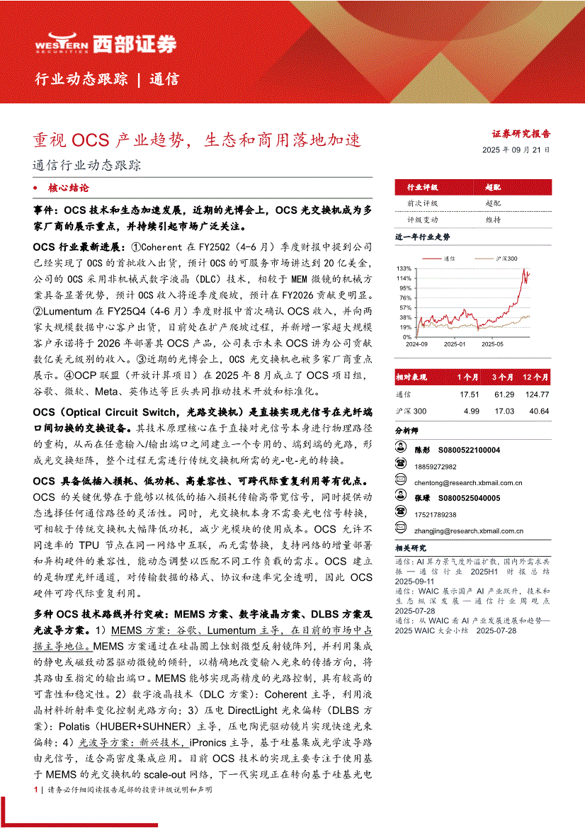 通信行业:西部证券-通信行业动态跟踪:重视OCS产业趋势,生态和商用落地加速-250921