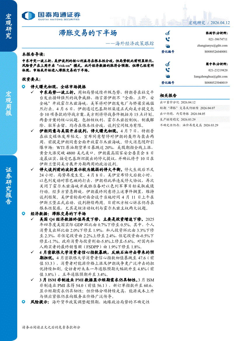 国泰海通证券-海外经济政策跟踪:滞胀交易的下半场-260412