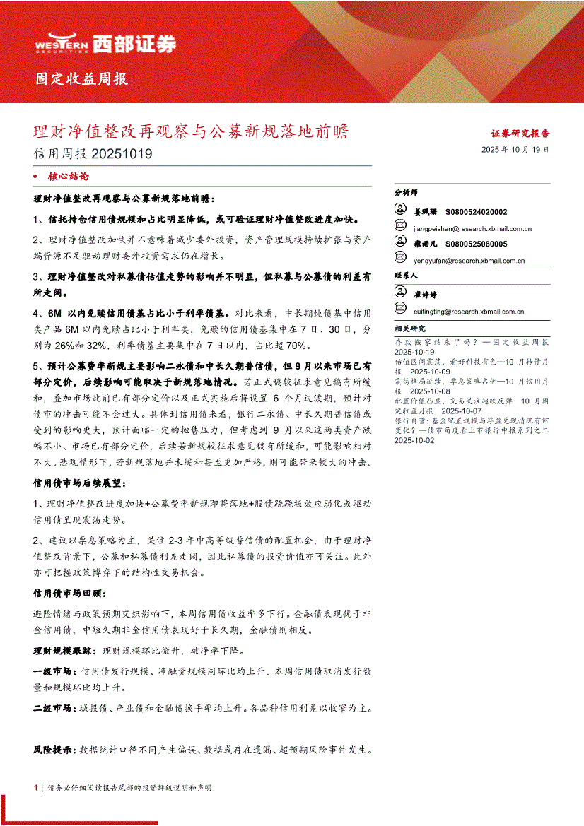 西部证券-信用周报:理财净值整改再观察与公募新规落地前瞻-251019