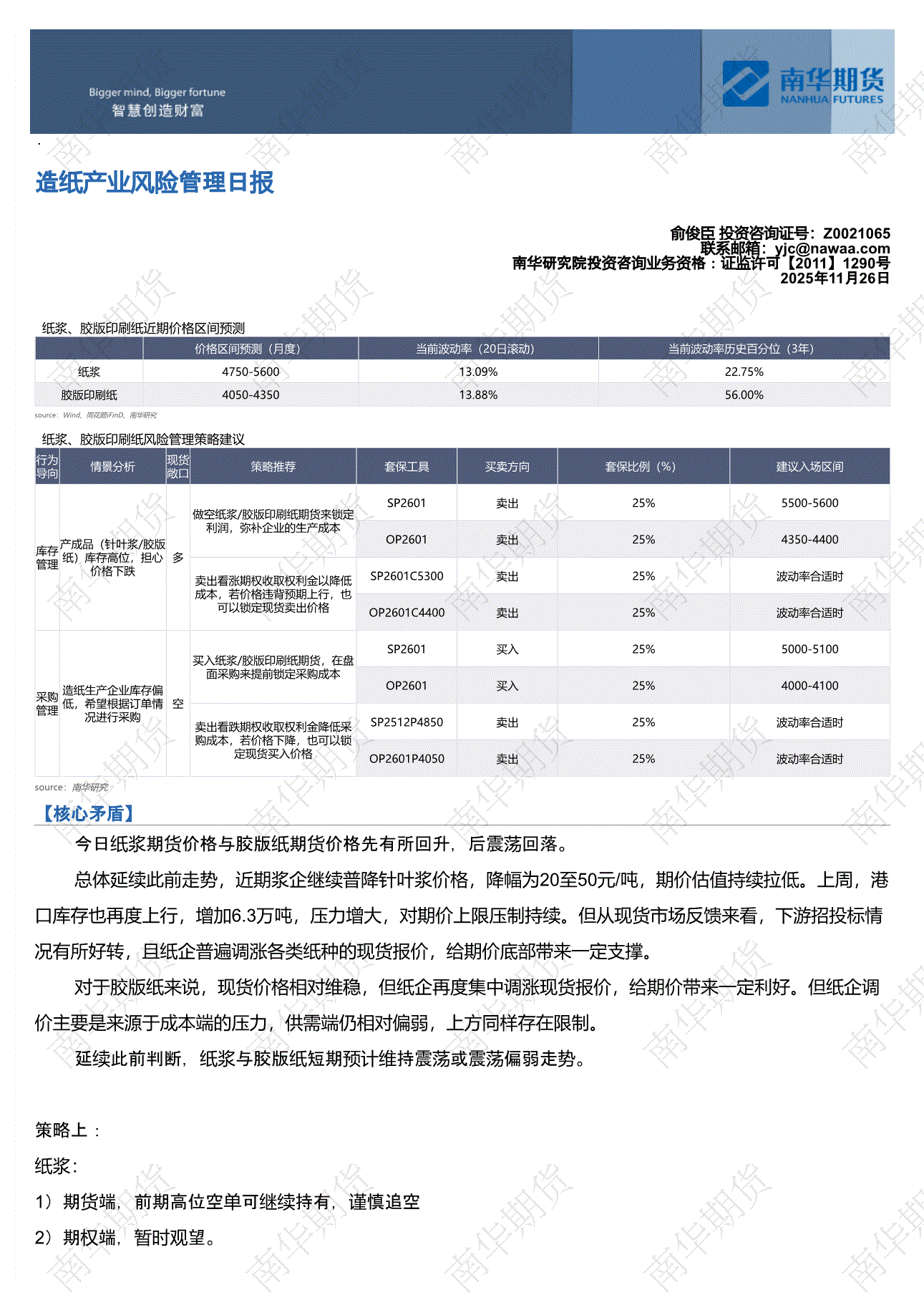 南华期货-造纸产业风险管理日报-251126
