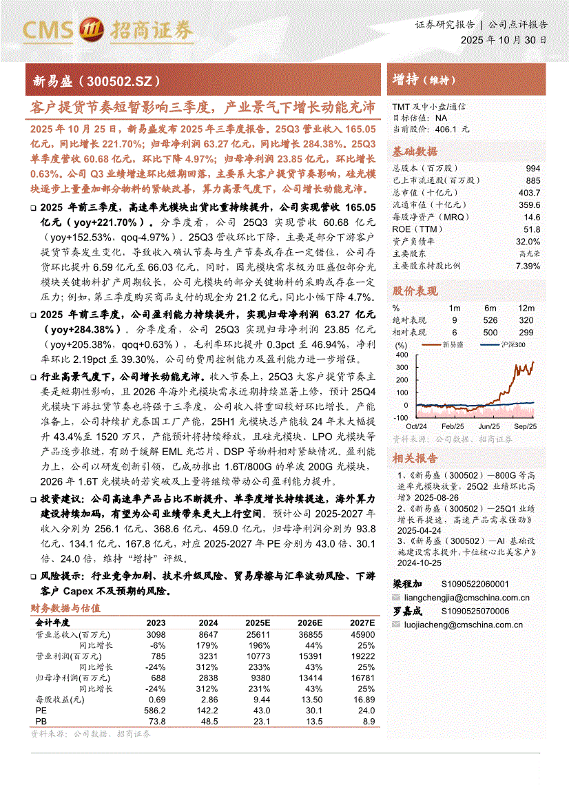 新易盛:招商证券-新易盛-300502-客户提货节奏短暂影响三季度,产业景气下增长动能充沛-251030