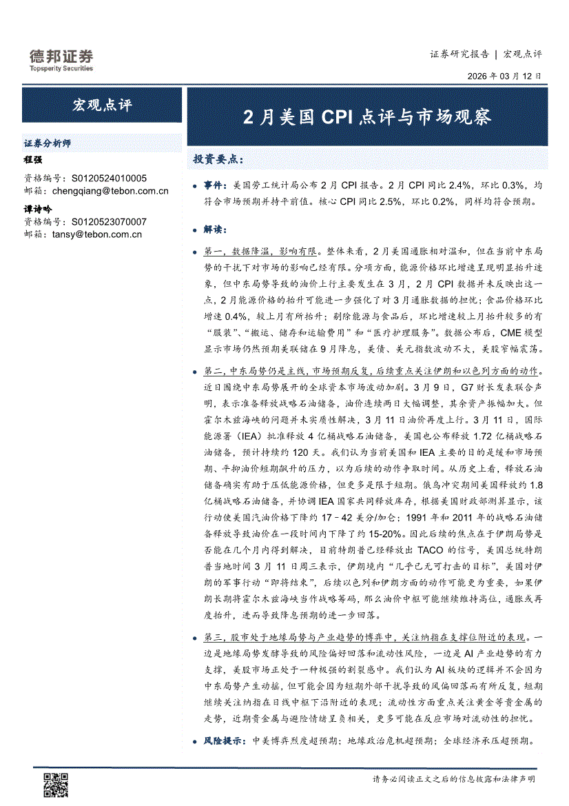 德邦证券-宏观点评:2月美国CPI点评与市场观察-260312