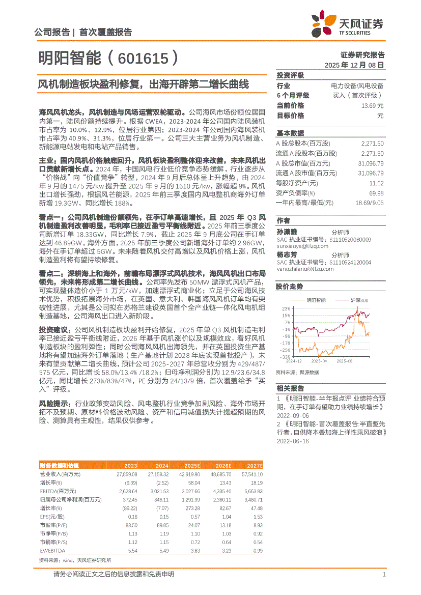 明阳智能:天风证券-明阳智能-601615-风机制造板块盈利修复,出海开辟第二增长曲线-251208