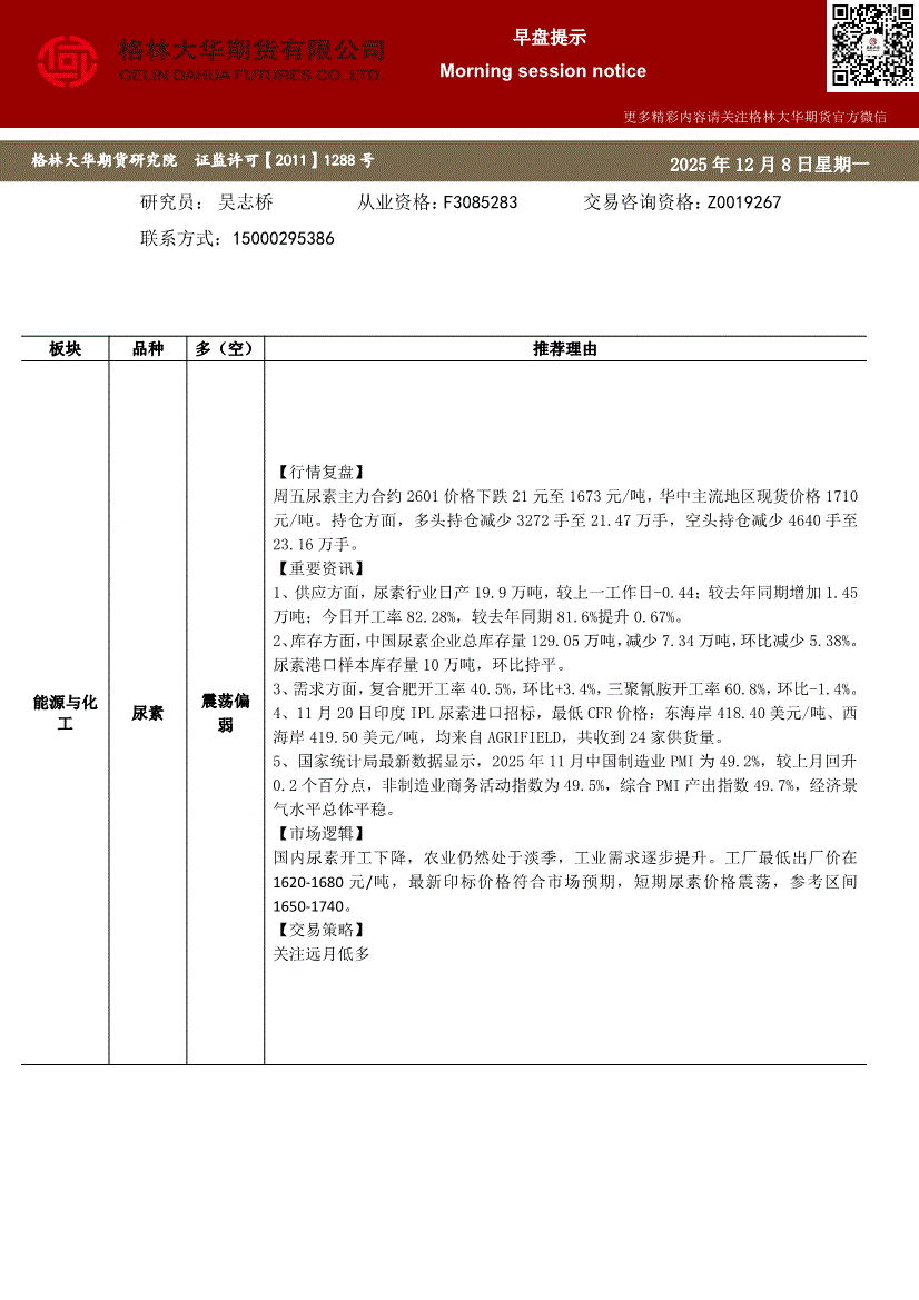 格林大华期货-早盘提示:尿素-251209