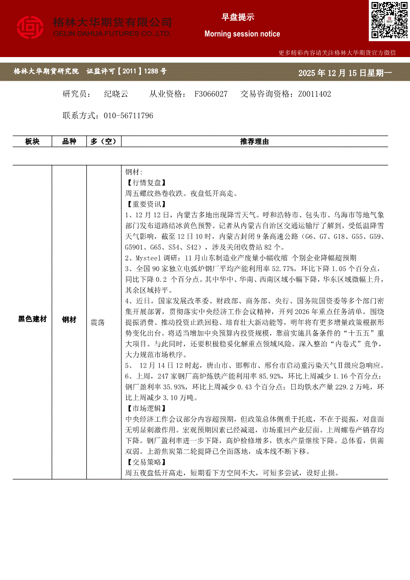 格林大华期货-早盘提示~焦煤、焦炭-251212