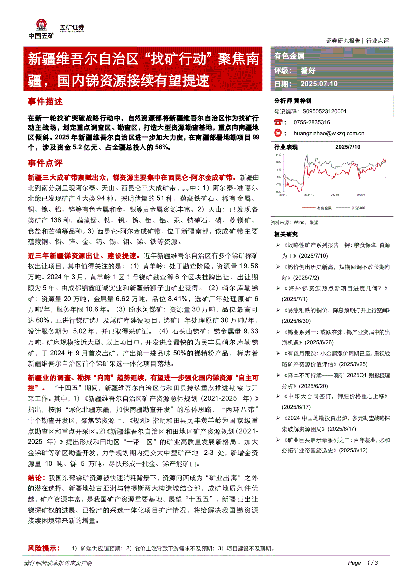 有色金属行业:五矿证券-有色金属行业:新疆维吾尔自治区“找矿行动”聚焦南疆,国内锑资源接续有望提速-250710