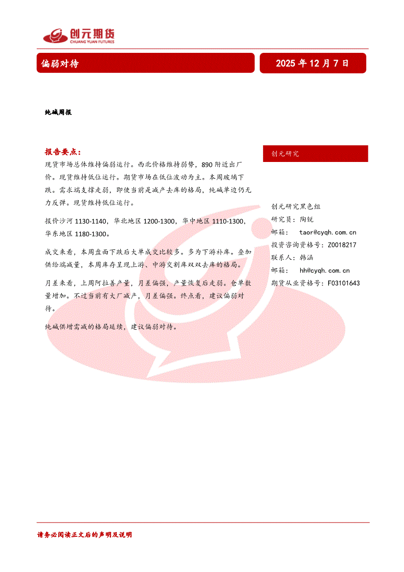 创元期货-纯碱周报:关注仓单和交割情况,偏弱对待-250810