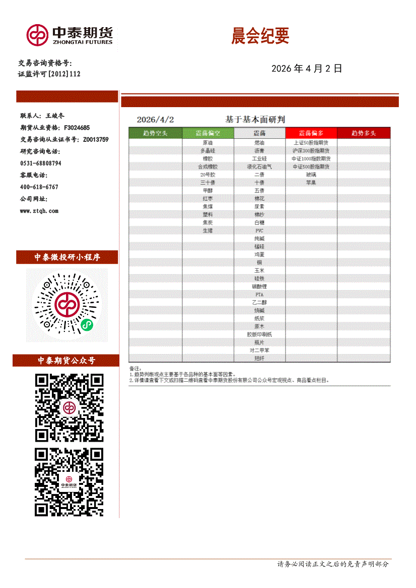 中泰期货-晨会纪要-260402