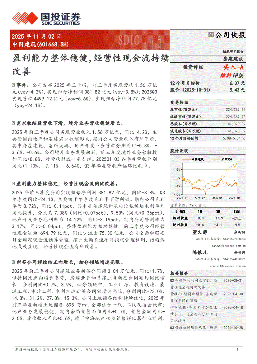 中国建筑:国投证券-中国建筑-601668-盈利能力整体稳健,经营性现金流持续改善-251102