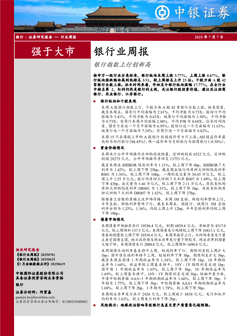 银行业:中银国际-银行业周报:银行指数上行创新高-250707