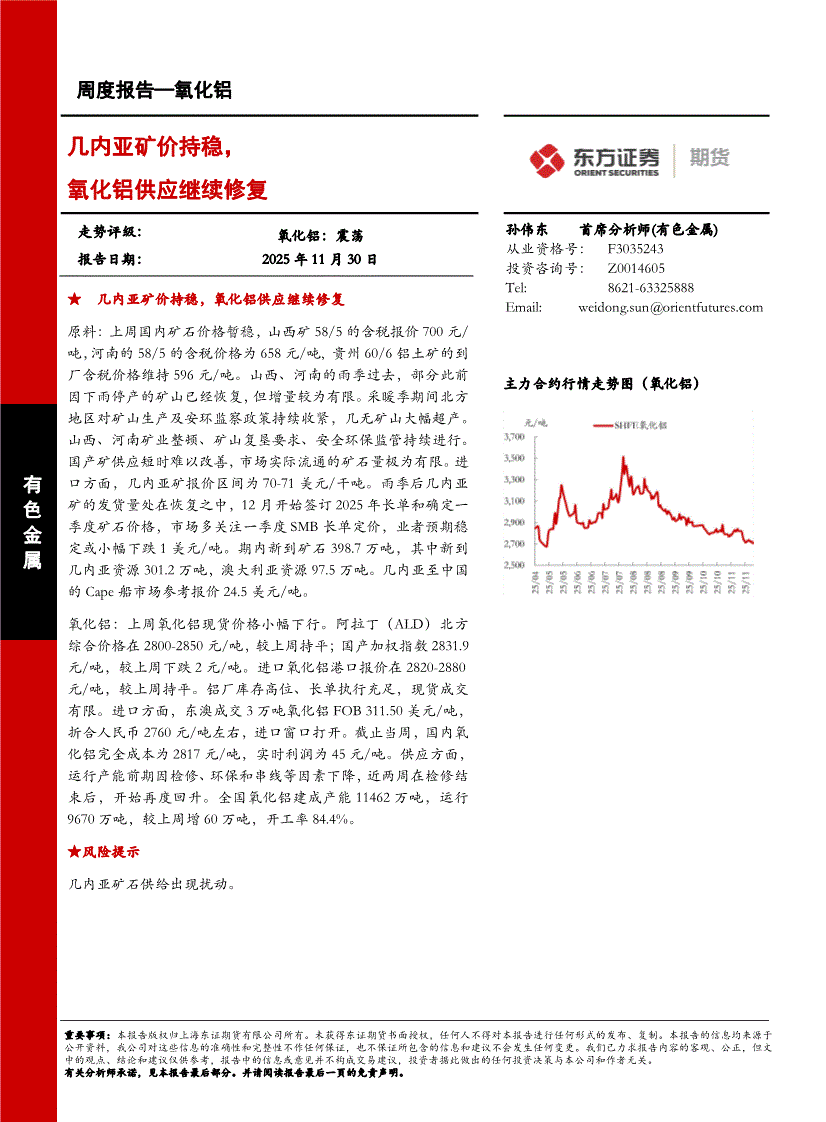 东证期货-氧化铝周度报告:几内亚矿价小幅下跌,氧化铝供应少量修复-251123