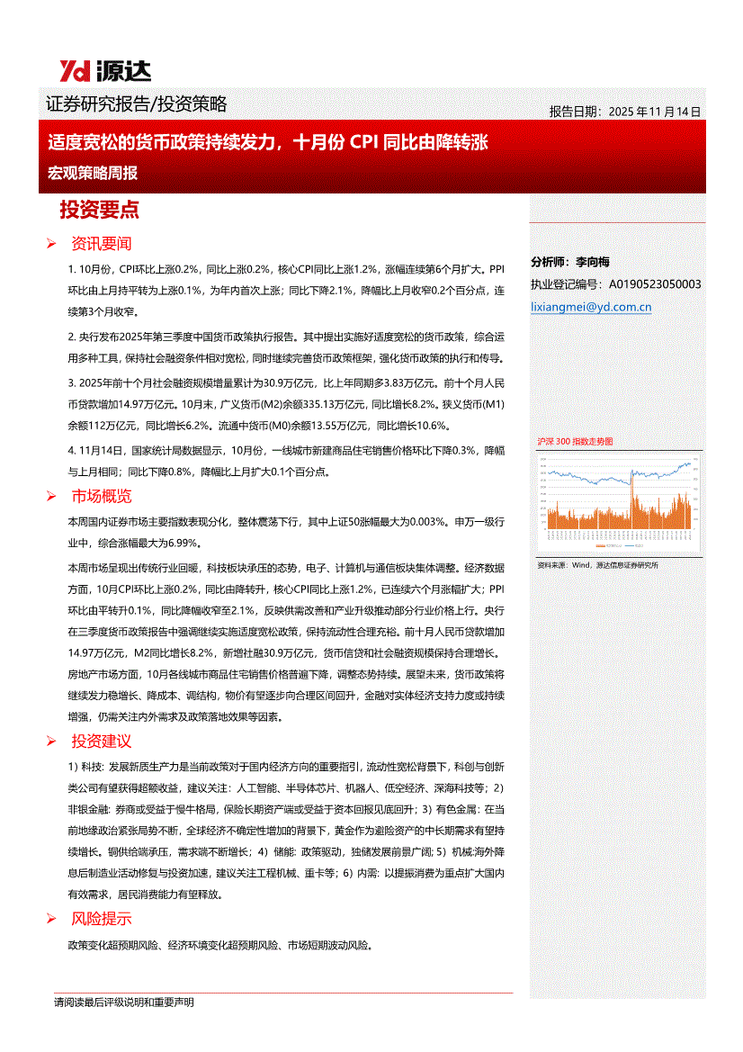 源达信息-宏观策略周报:适度宽松的货币政策持续发力,十月份CPI同比由降转涨-251114