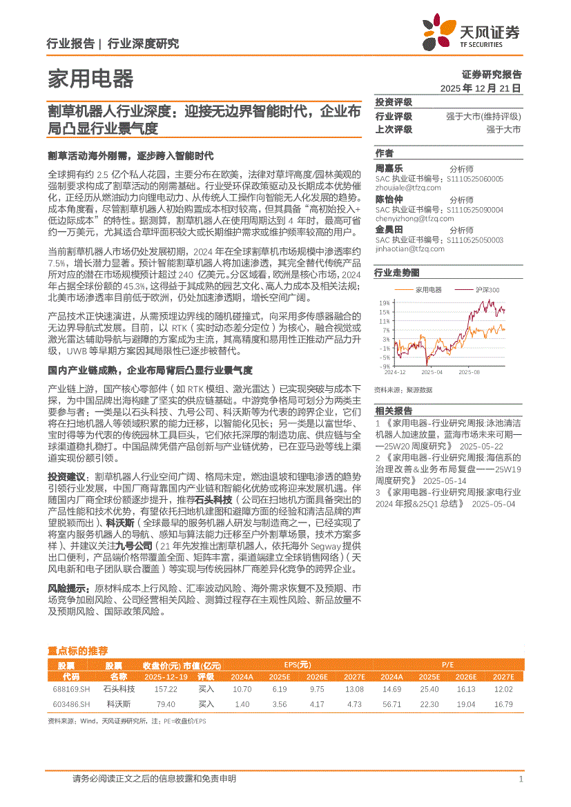 割草机器人行业:天风证券-割草机器人行业深度:迎接无边界智能时代,企业布局凸显行业景气度-251221