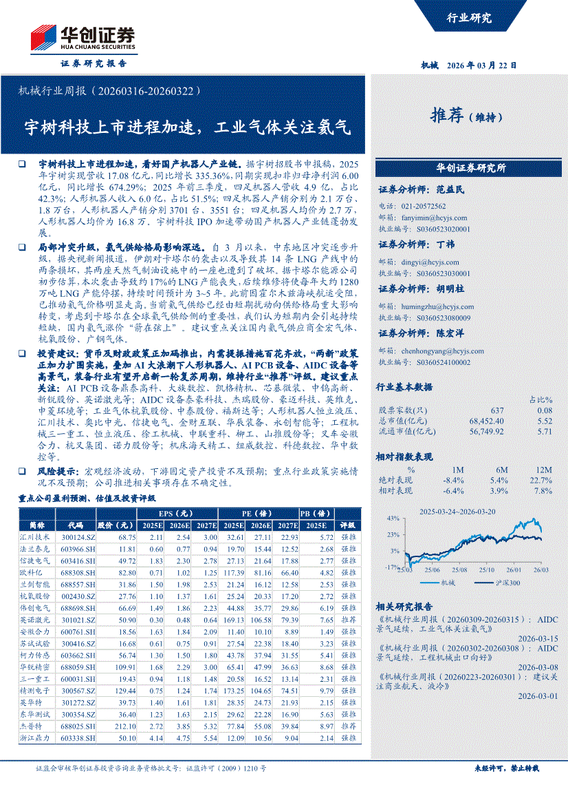 机械行业:华创证券-机械行业周报:宇树科技上市进程加速,工业气体关注氦气-260322