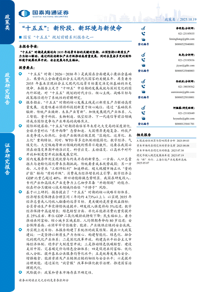 国泰海通证券-国家“十五五”规划前瞻系列报告之一:“十五五”,新阶段、新环境与新使命-251019