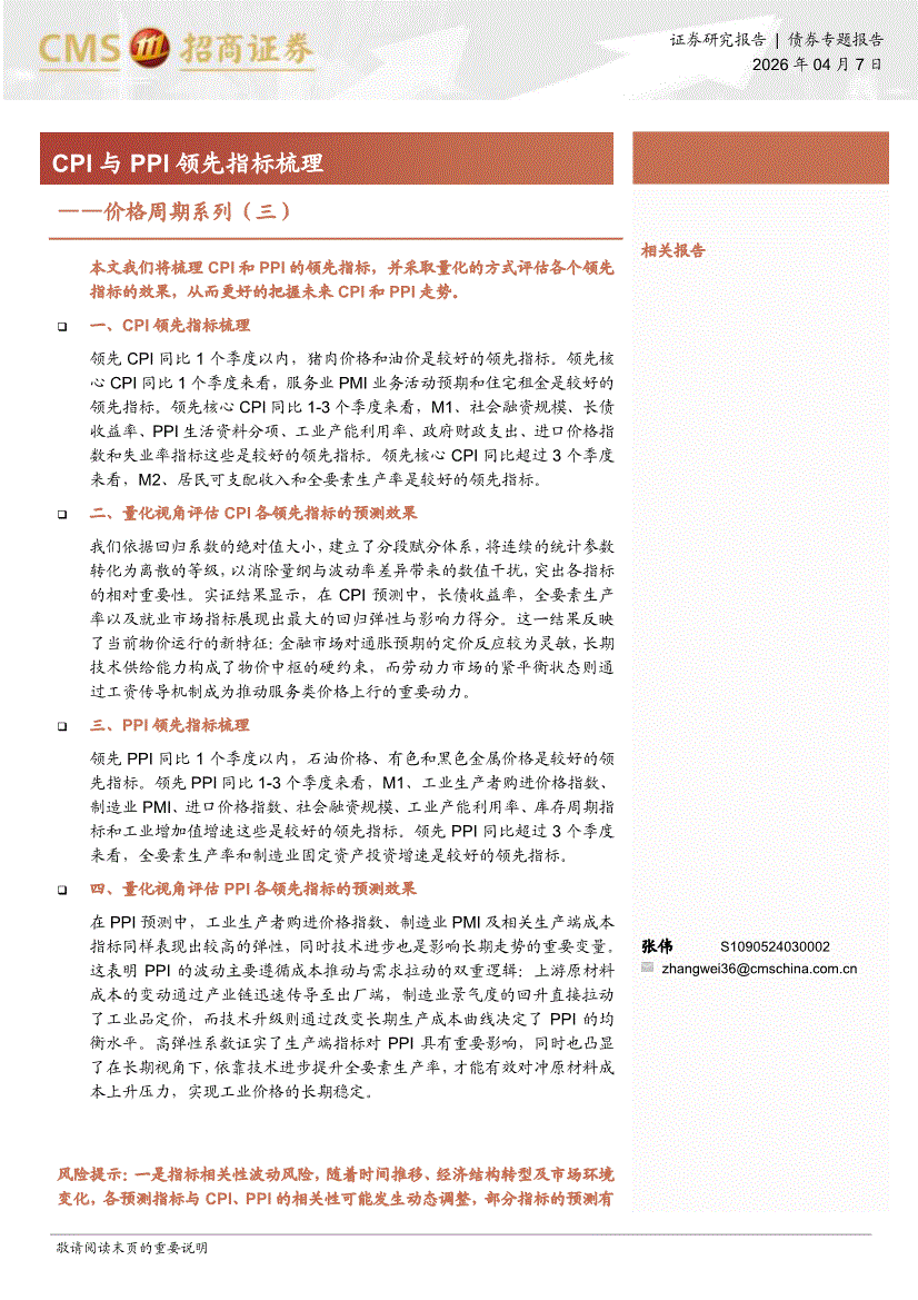 招商证券-CPI与PPI领先指标梳理——价格周期系列(三)-260407