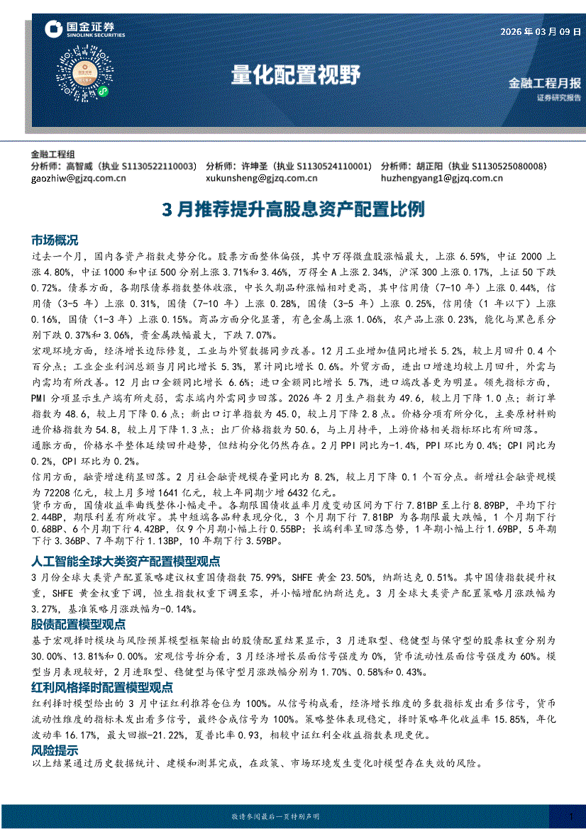 国金证券-量化配置视野:3月推荐提升高股息资产配置比例-260309