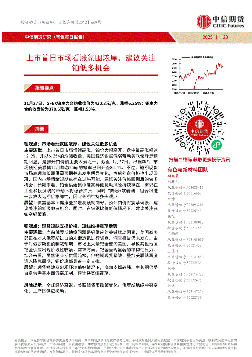 中信期货-有色每日报告:上市首日市场看涨氛围浓厚,建议关注铂低多机会-251128