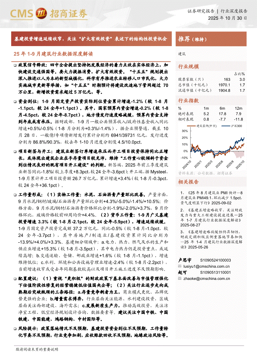 建筑行业:招商证券-25年1~9月建筑行业数据深度解读:基建投资增速延续收窄,关注“扩大有效投资”表述下的结构性投资机会-251030