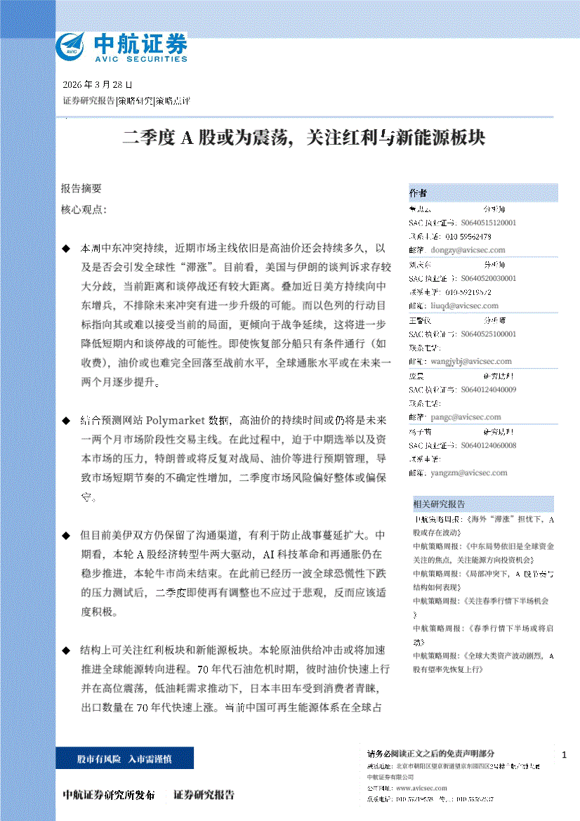 中航证券-二季度A股或为震荡,关注红利与新能源板块-260328