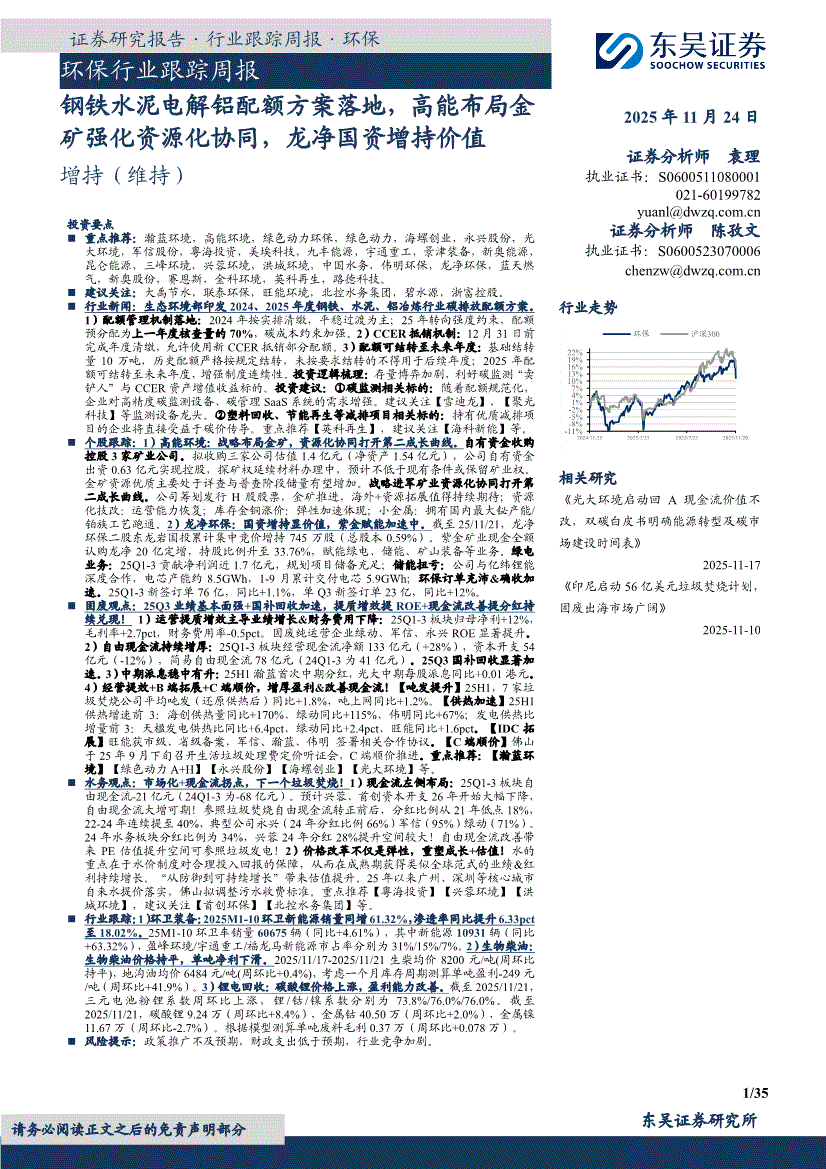 东吴证券-环保行业跟踪周报:钢铁水泥电解铝配额方案落地,高能布局金矿强化资源化协同,龙净国资增持价值-251124