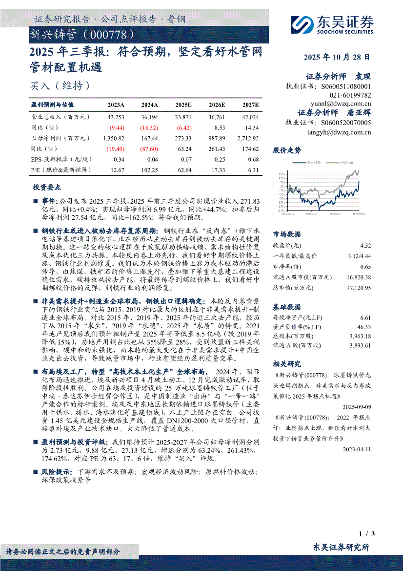 新兴铸管:东吴证券-新兴铸管-000778-2025年三季报:符合预期,坚定看好水管网管材配置机遇-251028