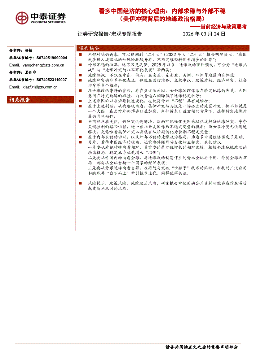 中泰证券-当前经济与政策思考:看多中国经济的核心理由,内部求稳与外部不稳(美伊冲突背后的地缘政治格局)-260324