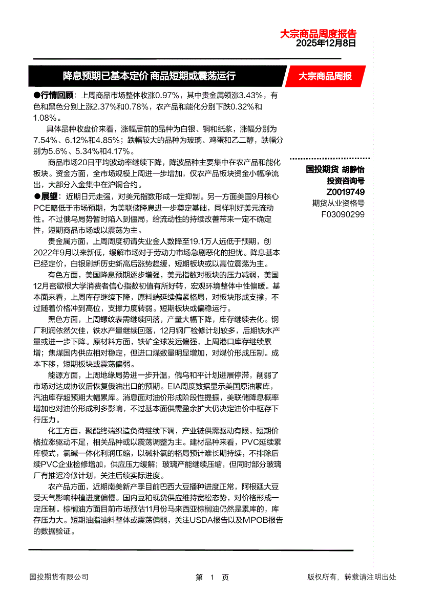 国投期货-大宗商品周报:降息预期已基本定价,商品短期或震荡运行-251208