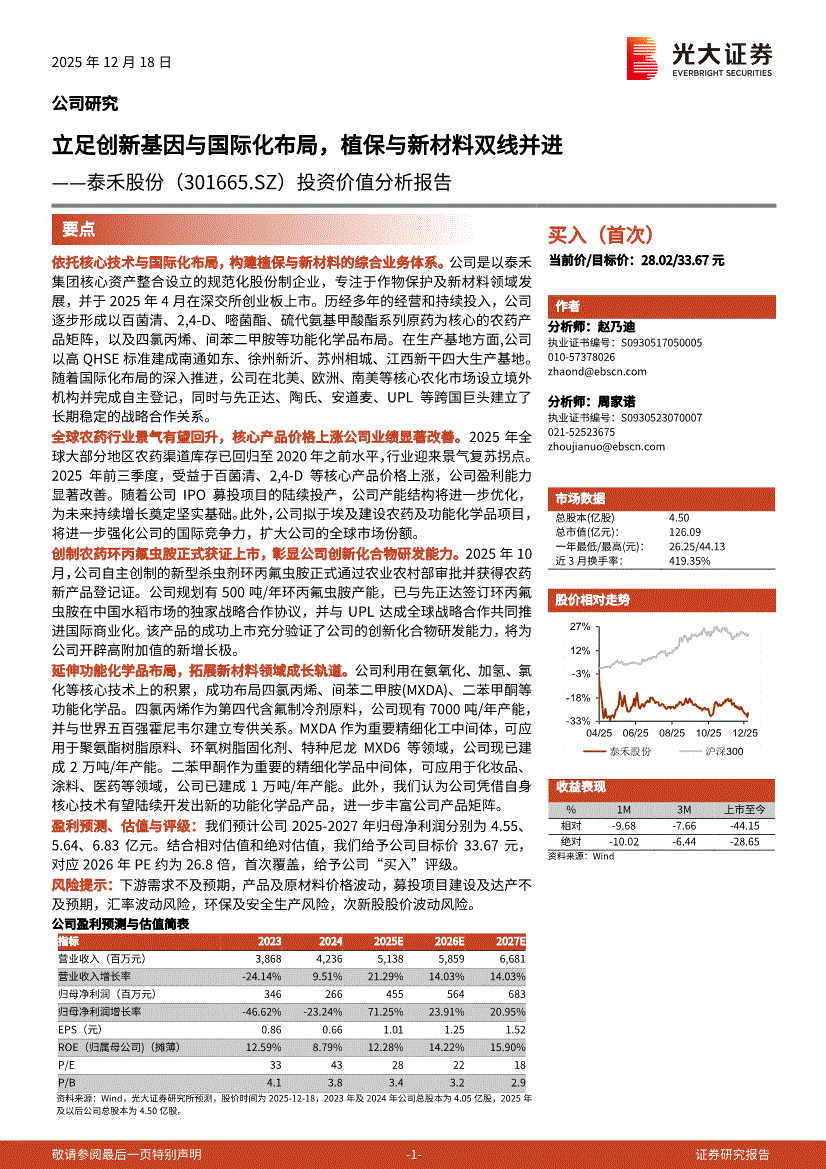 泰禾股份:光大证券-泰禾股份-301665-投资价值分析报告:立足创新基因与国际化布局,植保与新材料双线并进-251218